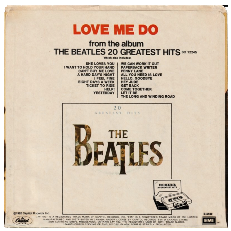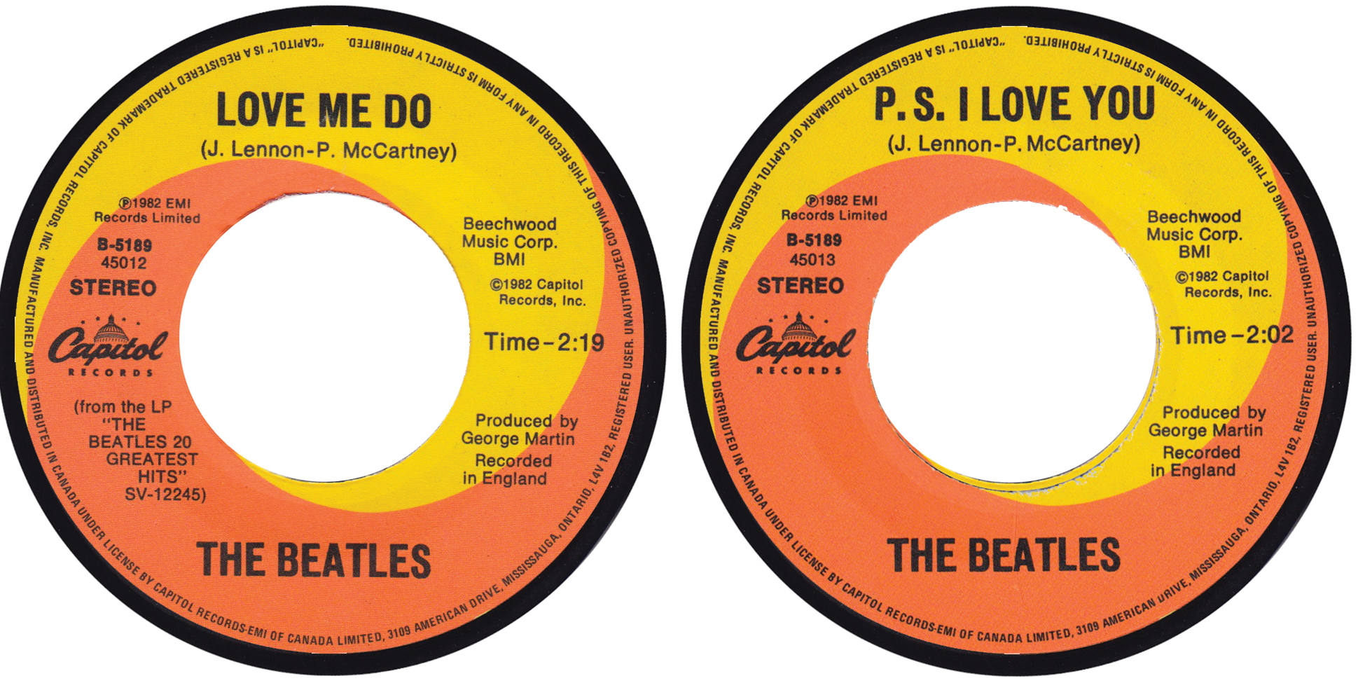 The 20th anniversary of Love Me Do saw some commemorative reissues around the world. In Canada, it coincided with the 20 Greatest Hits album, so Capitol saw a good opportunity to market both at the same time. Curiously, the single was marked as being stereo, but was in fact mono. This release featurd a new catalogue number (going from 72076 to 5189).