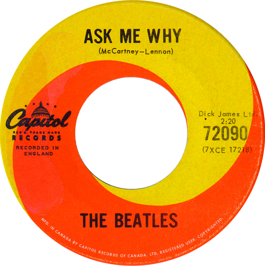Just like its predecessor, Please Please Me was not prepared from UK master tapes, but rather directly from a UK 45 sent to the Canadian head office for promotional purposes. This was confirmed by Graham Newton, cutting engineer at Capitol of Canada at the time (source: P. Hemmingsen, The Beatles’ Canadian Discography part. 1). The Canadian single therefore features the UK "Concertone" and "Dick James" credits that were quickly corrected on later copies (see 45.72090.1.2). Matrix numbers are as follows:
