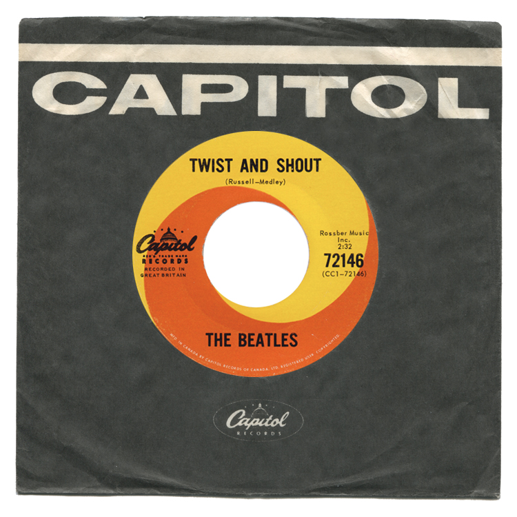 Twist And Shout was released while All My Loving was still at No.1. Twist And Shout reached No. 8 upon release, and climbed to No. 3 at its peak (source: P. Hemmingsen, The Beatles’ Canadian Discography part. 1). It went on to sell 97 405 copies in 1964, with an extra 2585 copies in 1965 (official sales numbers). This was the last of the unique Canadian Beatles 45s from the 72 000 series to chart (source: P. Hemmingsen, The Beatles’ Canadian Discography part. 3).