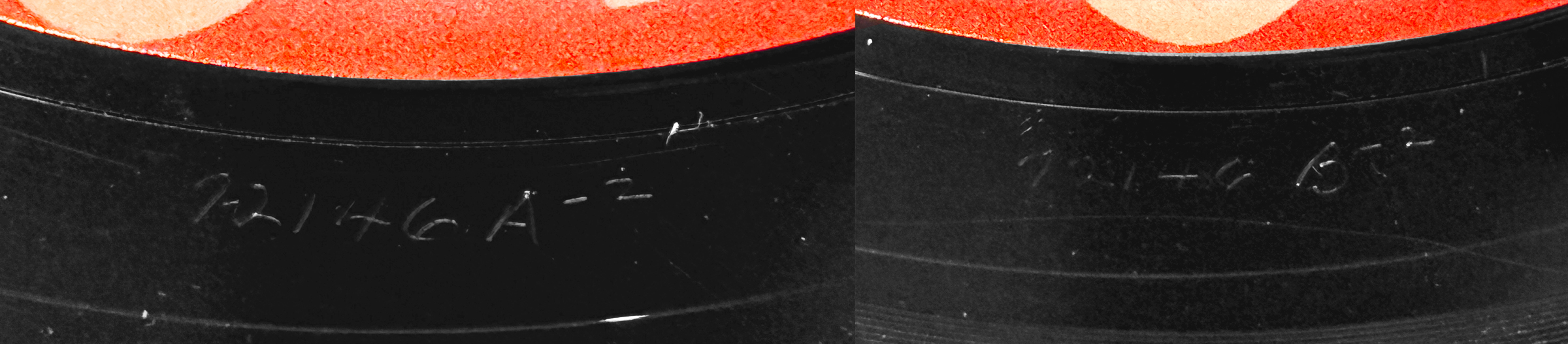 45.72146.7.1 (with BLACK perimeter print) was a STEREO release pressed by Columbia and these were therefore pressed from different masters than 45.72146.6.1. This seems to be the same mix as the LP version (LP.6054.8.1); this pressing features new matrix numbers on both sides: