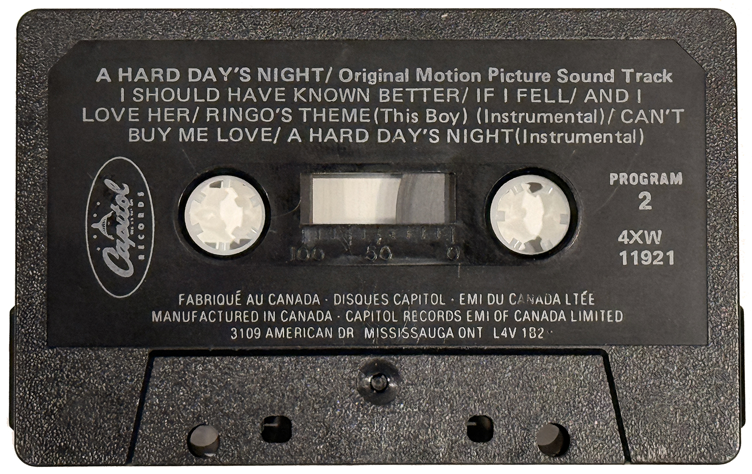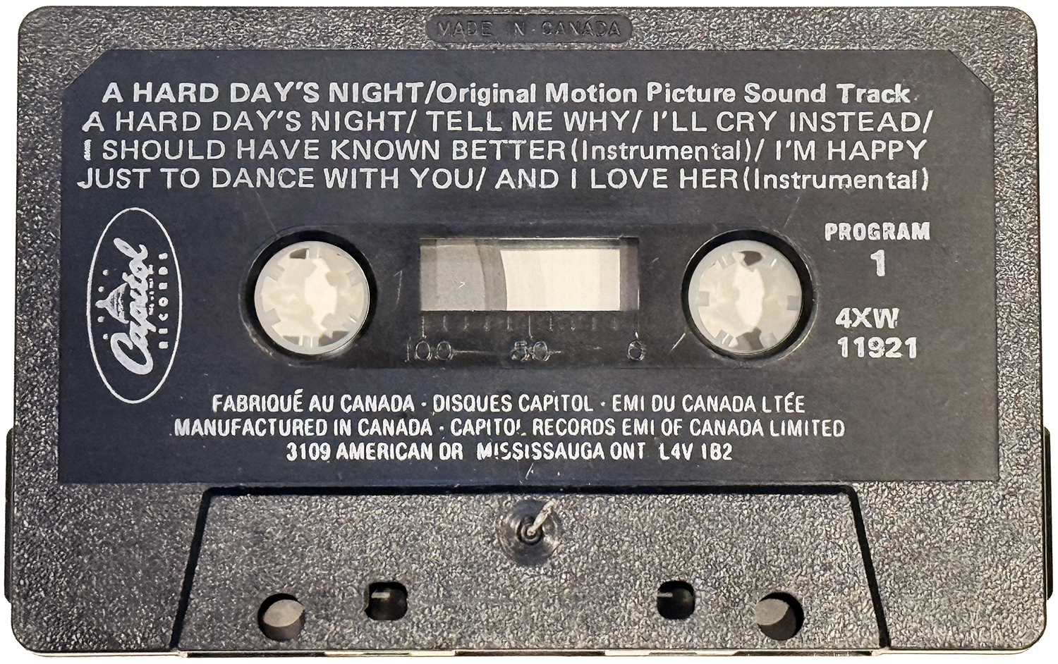 The United Artists title does not seem to have been issued in Canada before Capitol gained the rights to the UA catalogue. Cassettes were probably imported before that. An earlier pressing of this Canadian tape could have been made as early as 1978 (e.g., possibly with a yellow paper label), but no copy has surfaced to date. This black shell tape is the earliest example to have been documented.