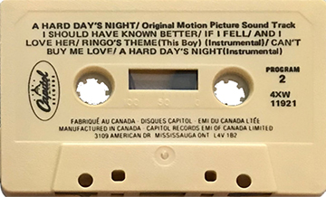 The United Artists title does not seem to have been issued in Canada before Capitol gained the rights to the UA catalogue. Cassettes were probably imported before that. An earlier pressing of this Canadian tape could have been made as early as 1978 (e.g., possibly with a yellow paper label), but no copy has surfaced to date.
