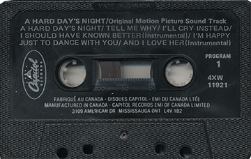 This cassette incarnation was on the "Color J-card (red) format", a series design by Capitol of Canada, only for Canadian Capitol cassettes, and is possibly the most common cassette variation of the album.