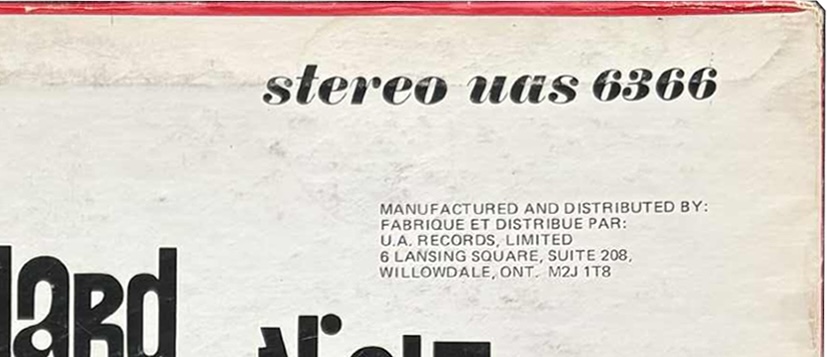 United Artists now used Capitol's brand new pressing plant in Mississauga. It features the same Capitol master found on variations LP.6366.UA5.1: