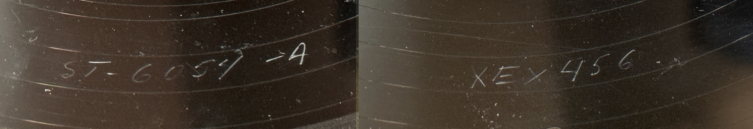 Making sense of the different stereo mixes is a challenge, but the real challenge lies more in the identification of when they appeared, and when they were replaced by a newer mix. Capitol and their pressing subcontractors never wasted any production material and used pressing plates until they were worn out. Plates for both sides of an LP did not necessarily wear out simultaneously, causing many copies pressed during a transition period between new masters to be hybrids between two mixes. It seems that a clear desire to produce a uniform series of reissues only happened with the retro rainbow label in 1984. Indeed, only then was a completely new master made from a proper true stereo mix finally introduced. This new master is quite apparent when comparing the width of the dead wax on each side.