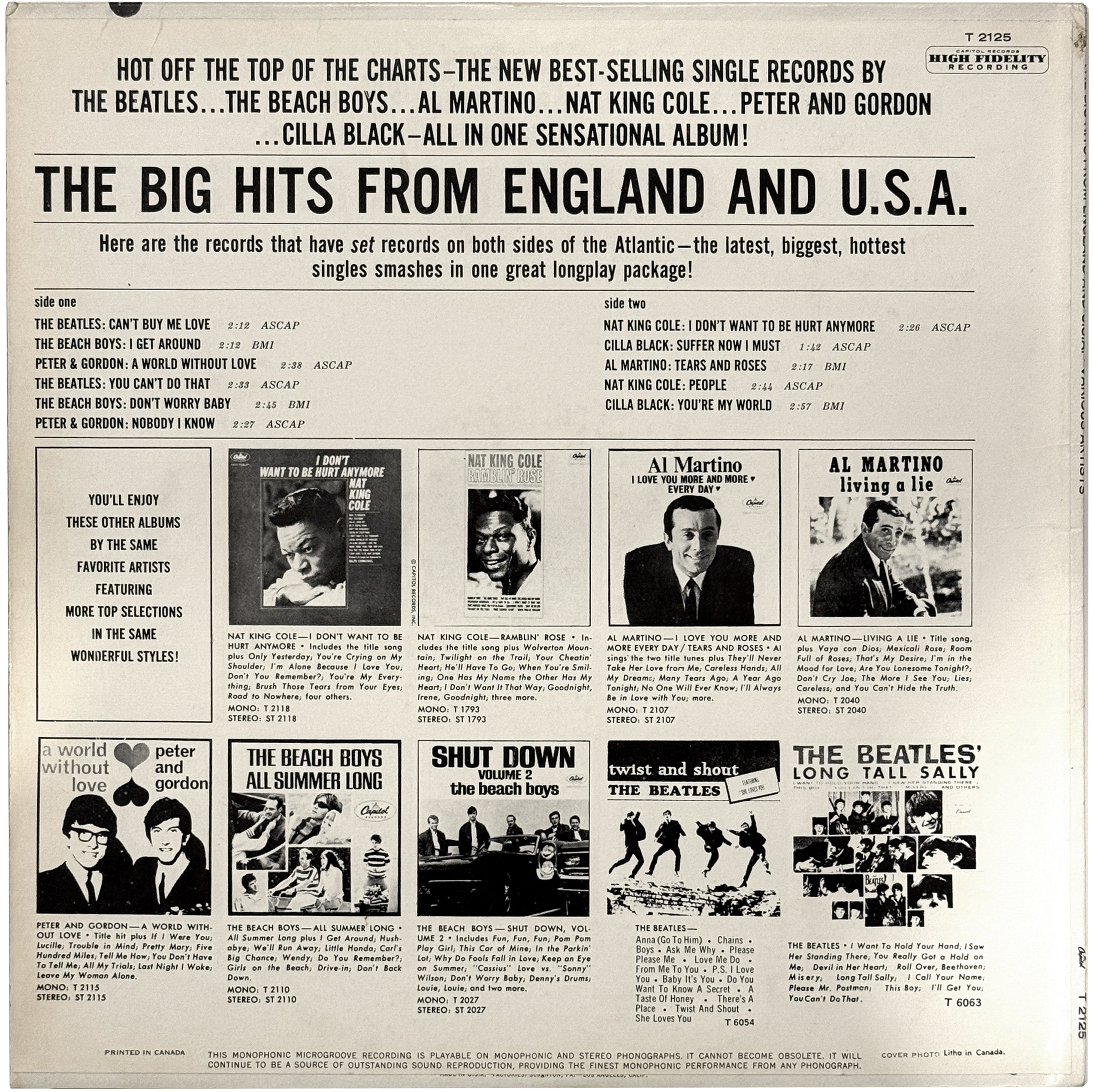 Canadian pressing of a USA Capitol compilation