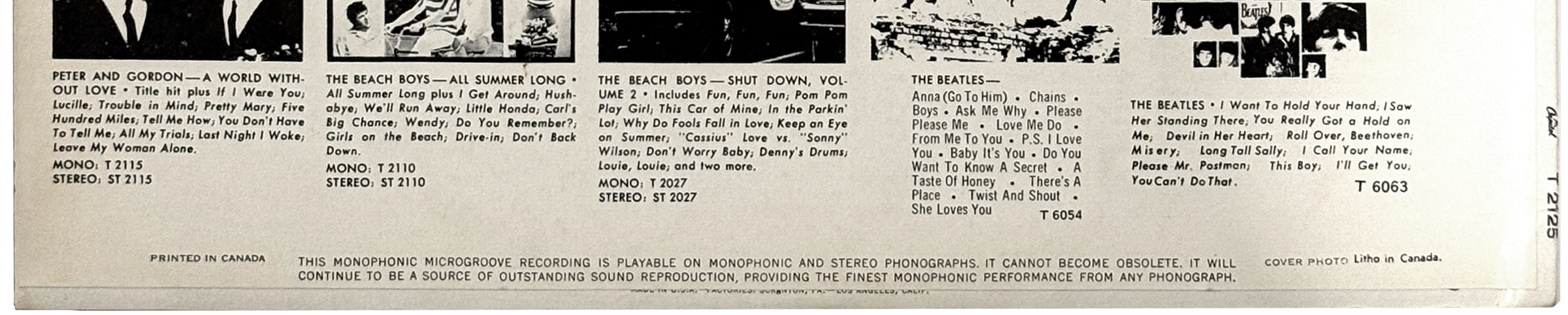 This album was a Capitol USA creation, but it was also issued in Canada. This mono compilation featured two Beatles tracks that were popular at the time of release. It sold very poorly and is considered hard to find today.