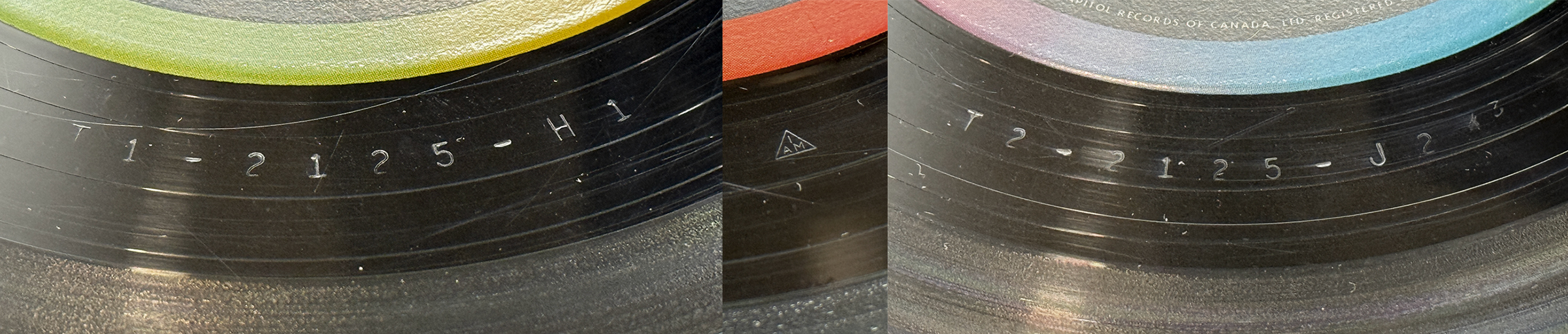 Unlike the USA, Canada only issued a MONO version of the album. This mono pressing was pressed at RCA in Smiths Falls from pressing plates sent from the Scranton pressing plant in the USA. It featured machine-stamped matrix numbers, as well as the triangular IAM logo, designating the Scranton pressing plant: