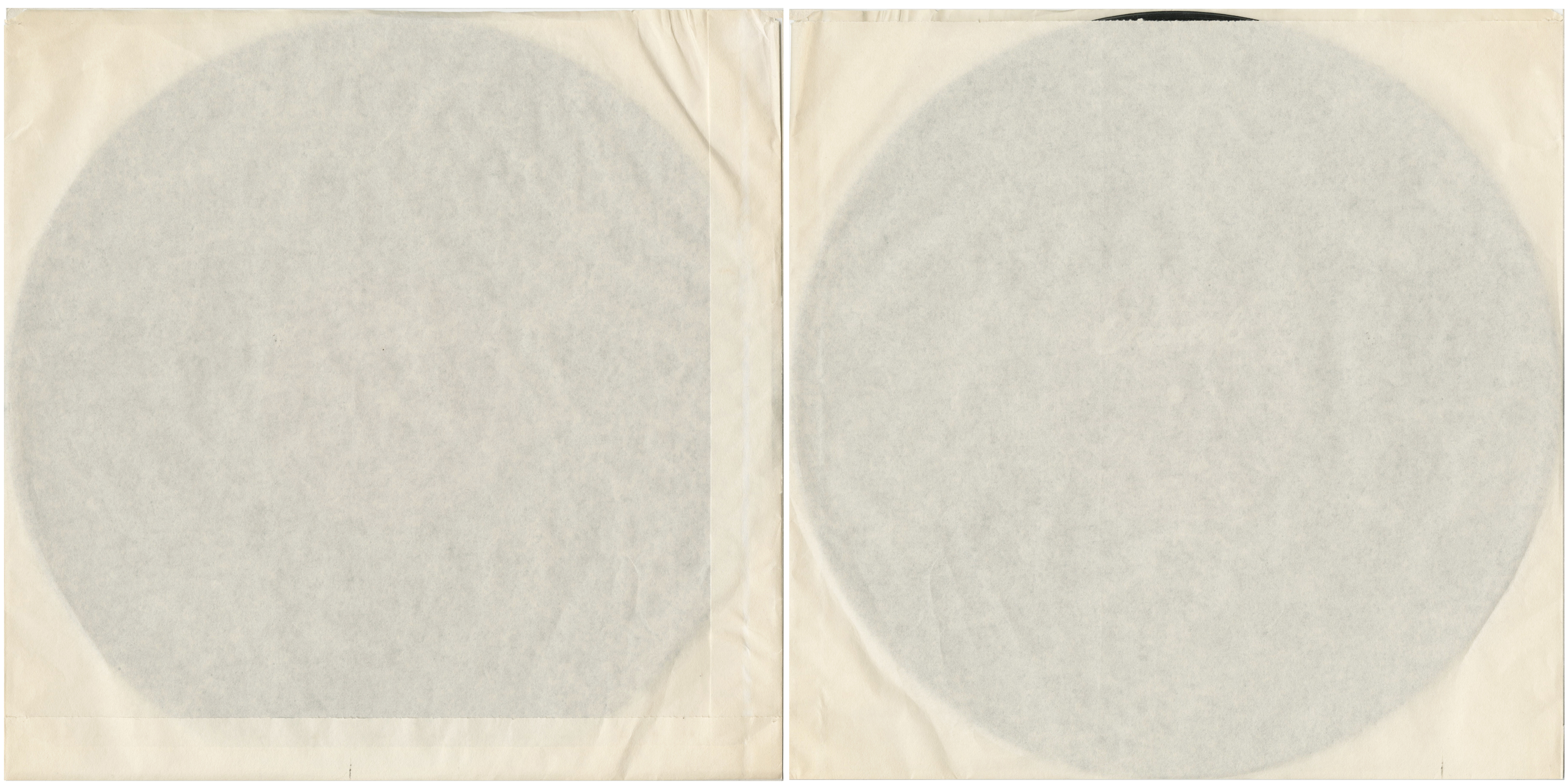 This edition was shipped in tight shrink wrap, with or without a plain paper LP inner sleeve. These Capitol sleeves have a large flap on the bottom and side.