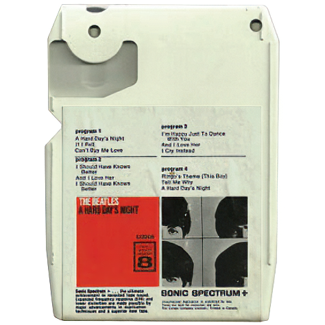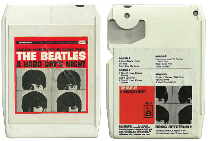 8T.3006.UA1.1 is the first 8-Track issue of A Hard Day's Night, and unlike other Capitol releases, it was seemingly prepared by Compo in 1968 (although it seemed to use a similar Ampex Datapck shell) - Source: Piers Hemmingsen's Beatles Discography vol. 3. These are recognized by their two separate slicks (front and back), rather than the more common "wraparound" slick that covers both the front and the edge (but not the back).