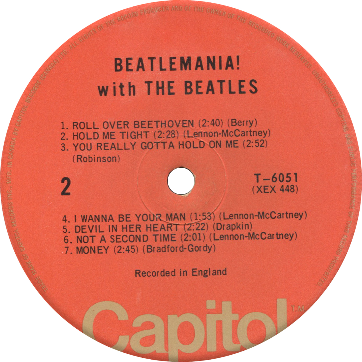 First generation orange labels can be identified by the gold perimeter print around the label, second generations have black text that is much easier to read. This pressing was made in small quantities when demand required a new run of pressings to restock the warehouse. Another interesting fact is that this label generation was unique to Canada since Capitol USA opted for the Apple label for their Capitol reissues instead.