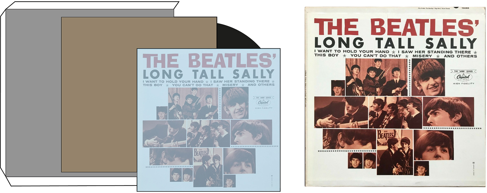 This edition was shipped in tight shrink wrap, with or without a plain paper LP inner sleeve. These Capitol sleeves are square and have a slight curve at the top.