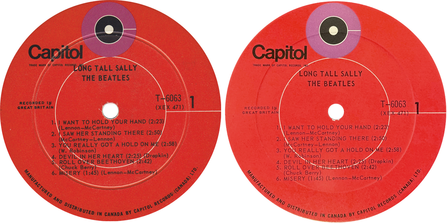 After a short hiatus (a pause in the pressing of the three unique Canadian albums), Capitol of Canada subcontracted once again the RCA pressing plant in Smith Falls (Ontario) to manufacture new batches of albums, this time with the new "Red Target" label. No green target label pressings have been confirmed to date, so this marks Capitol's decision to keep offering these albums to Canadian fans. Known copies still have the same "-2" matrix numbers as previous variations. Some have -2 on both sides, other copies only on side B: