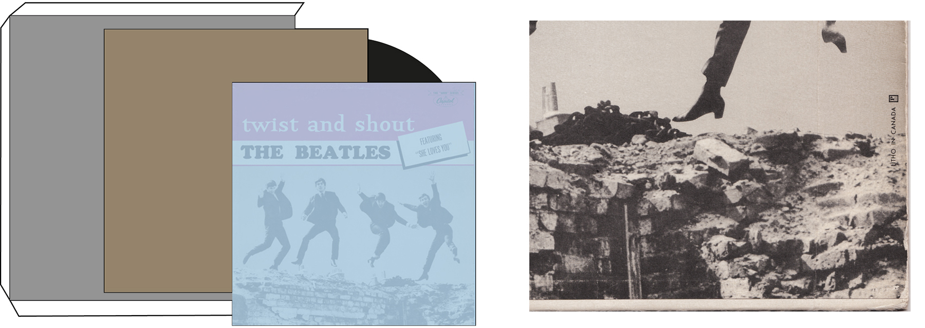 This edition was shipped in tight shrink wrap, with or without a plain paper LP inner sleeve. These Capitol sleeves are square and have a slight curve at the top.