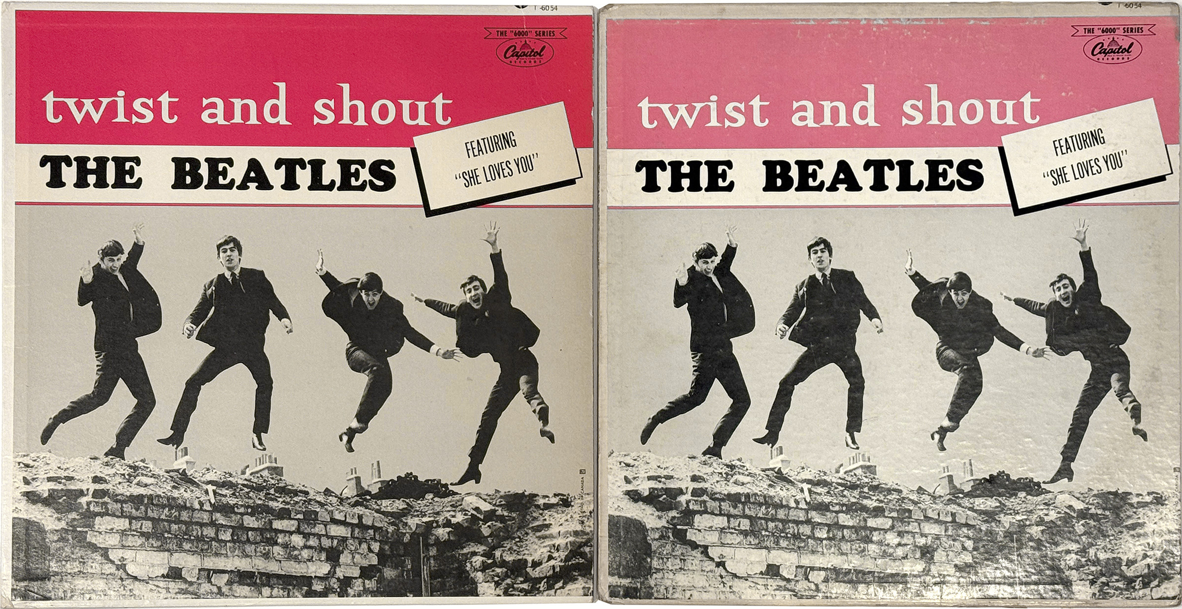 Again, most copies are found with a much lighter shade of pink (left: regular cover, right: LP.6054.6.1 cover).