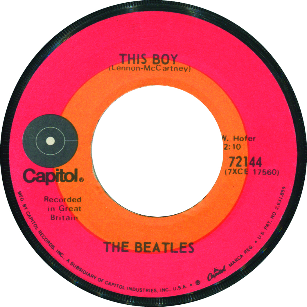 Some copies also feature the THIS BOY label on both sides (a double mistake!), although the audio remained correct, with both songs pressed onto the records.