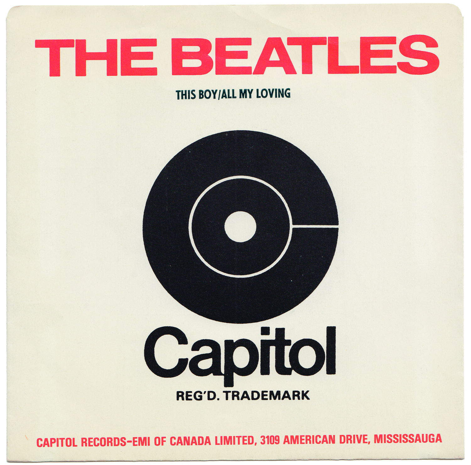 These new orange label pressings were sold in the custom design "Beatles Forever" series of sleeves, but later copies would also have been sold in the regular brown / orange target Capitol sleeve, once the custom sleeve stock was empty. Also note that this new sleeve marks THIS BOY as th A-Side, while all other previous releases put All My Loving as the A-Side, when looking a matrix numbers.