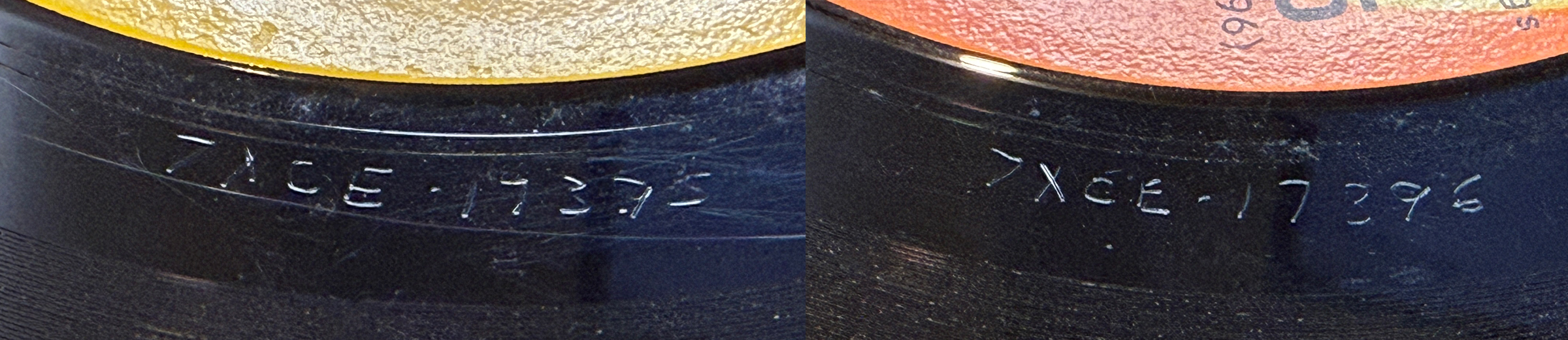 This 45 was also dubbed from the UK single, like its predecessors. Copies with "no dash and number" are extremely scarce today, as very few copies seem to have been made -- not even enough to fulfill initial orders (which is why the "defective stamper" seems a likely explanation).