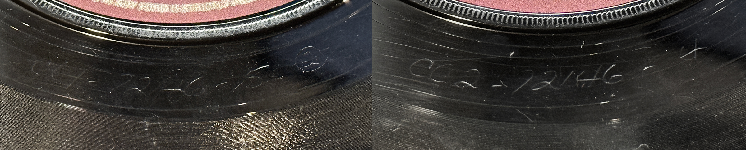 These new purple label pressings were most likely sold in either the flat finish grey Capitol sleeve with purple dome logos concentrically arranged around the die-cut hole, or its glossy silver counterpart.